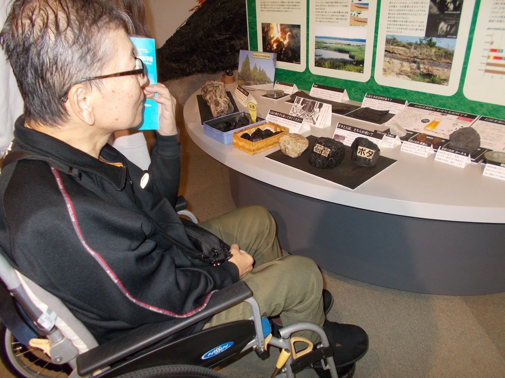 館内では、当時使われていた重機、道具などの展示があり、薄暗い坑道をイメージした通路は「作業は大変だったんだろうな…」と思いを馳せている利用者さんもいらっしゃいました。