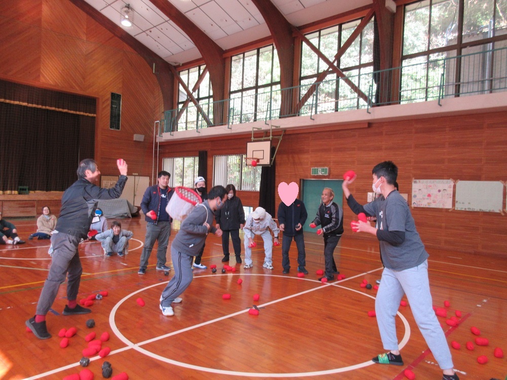 懇談会後は親子でミニゲームをしました。ボッチャや障害物競走、まさに