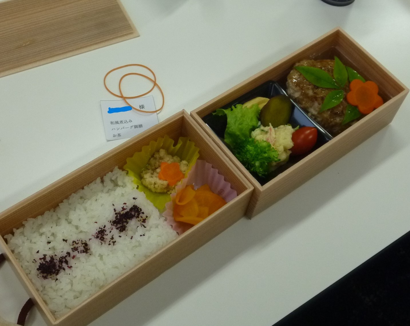 今年は近くのコミュニティセンターを借りて、4種類のお弁当からそれぞれ選んでもらってのお食事会でした。