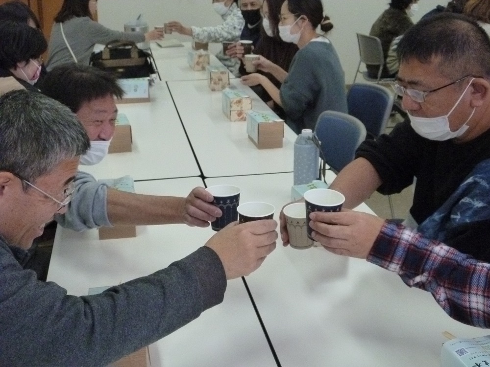 乾杯の挨拶を利用者さんにお願いをし、食事スタートです。それぞれのお弁当を見せ合ったり、普段話さない方と話したりで皆さんの笑顔が印象的でした。