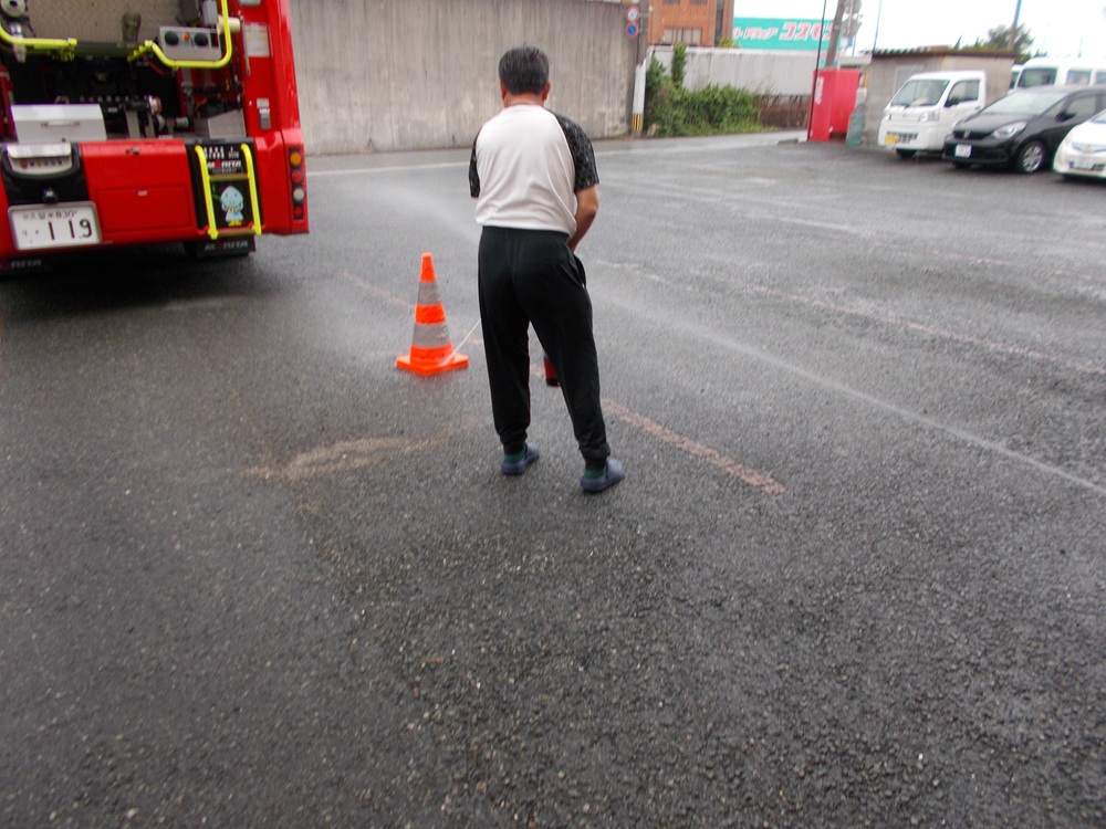 その後は水消火器体験を行い、的にしっかりと水を当てることができました。