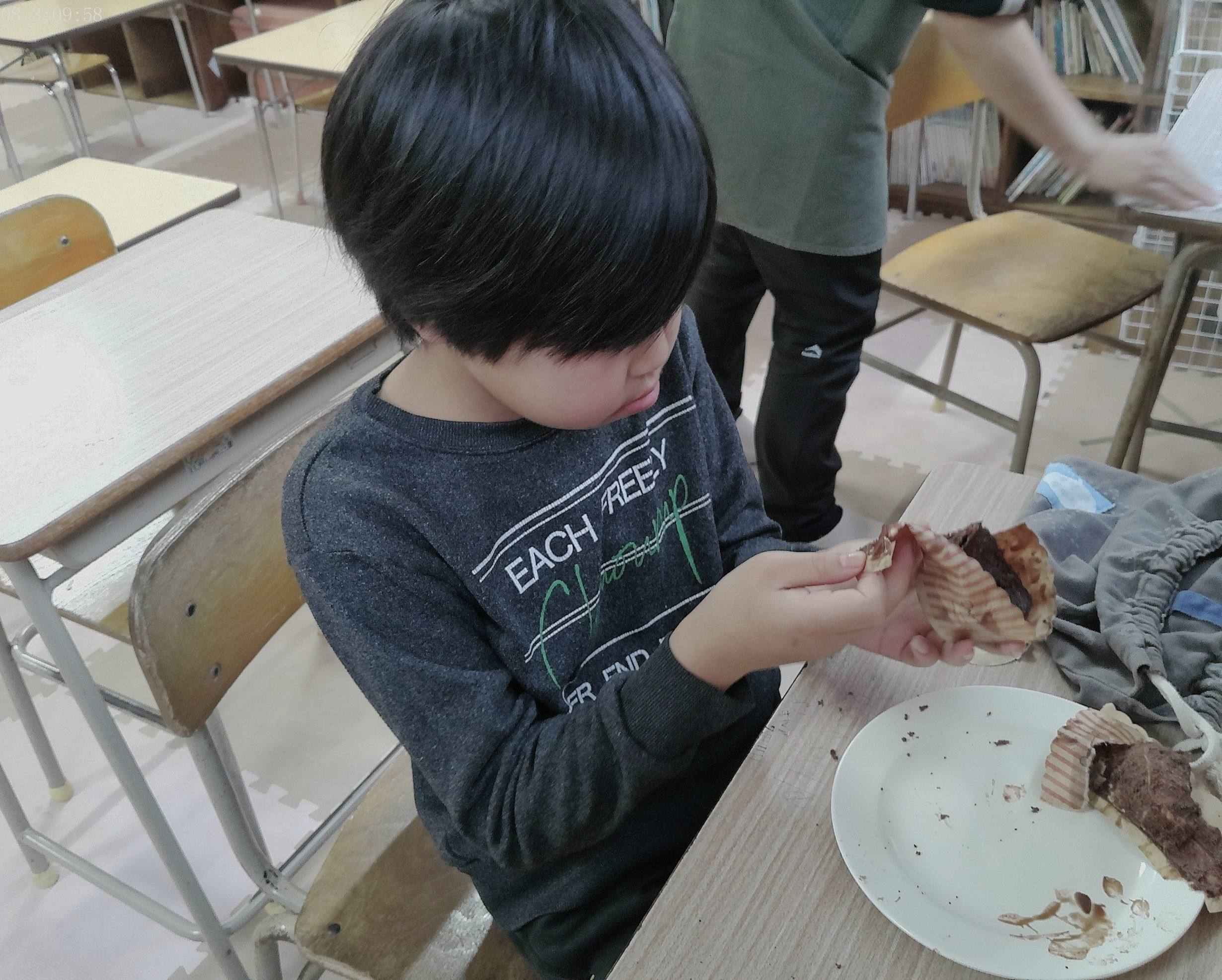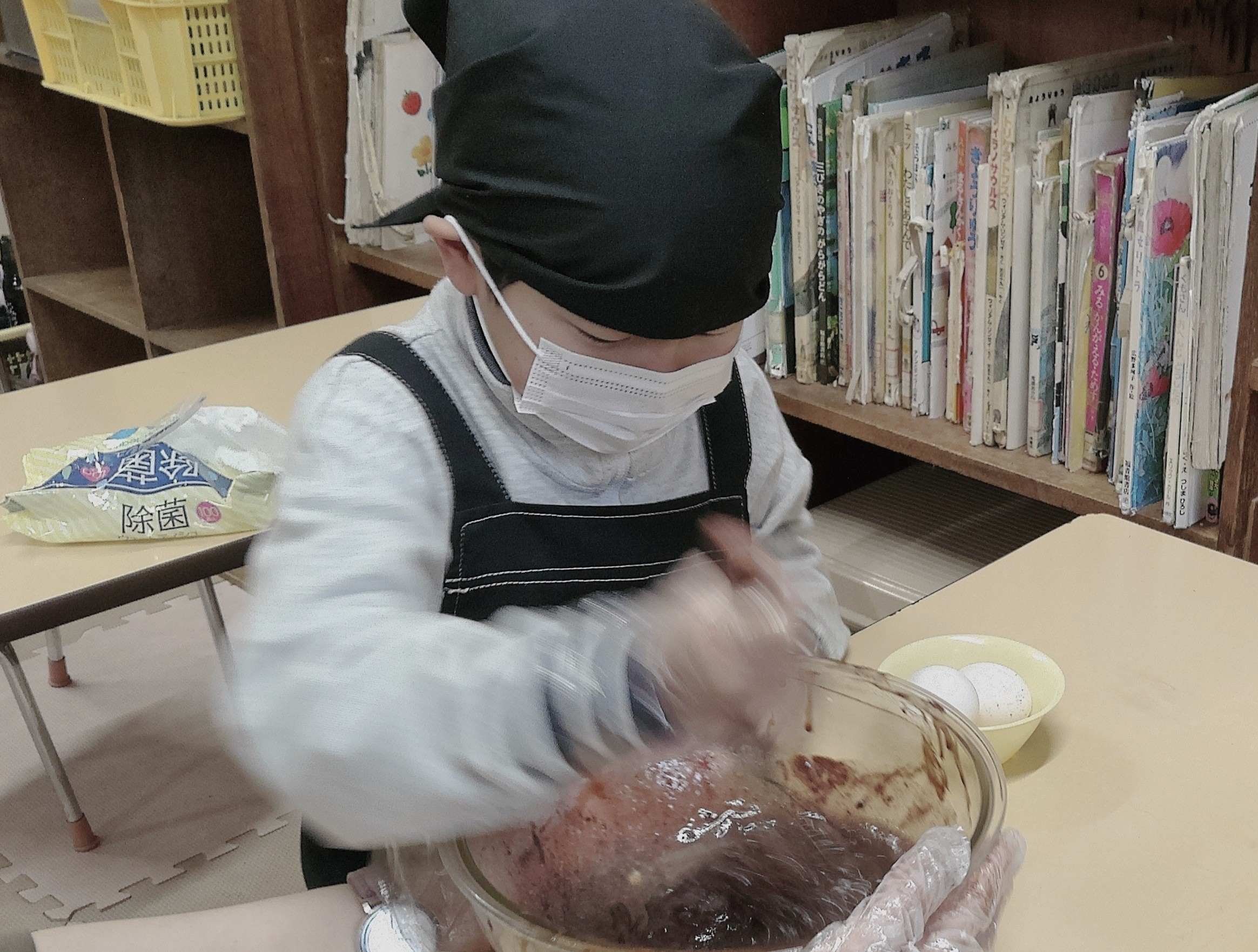 2月14日はバレンタイン!!土曜日の活動でガトーショコラ作りをしました。チョコとバターをレンジで溶かし、牛乳と卵を混ぜてカップに入れて、再度レンジでチン!上手にできあがりました。半分食べて半分持ち帰る予定でしたが、食べずに持ち帰ったり1つだけ食べたりした児童もいました。食べた児童は美味しい!と大満足!でした。